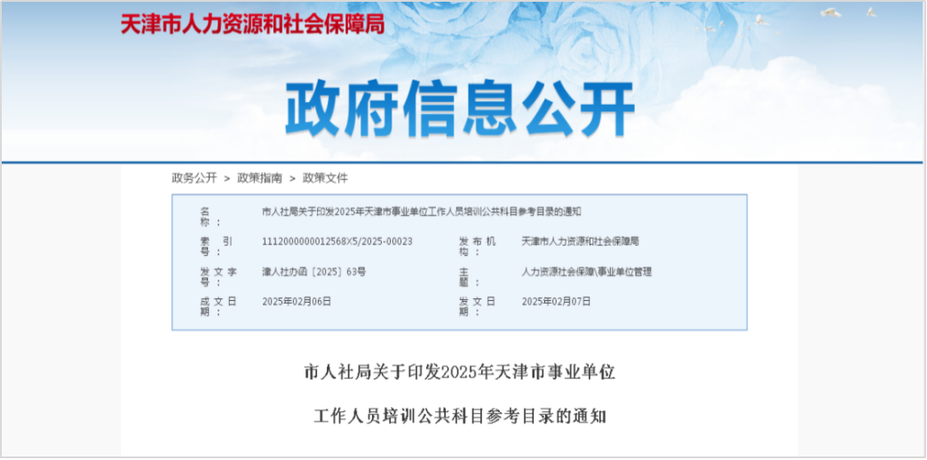 点击上方蓝字,关注我们 事业单位人事管理 引言:为方便相关单位及时了解事业单位人事管理最新政策法规、工作动态和其他参考信息,人力资源和社会保障部事业单位人事服务中心(简称人社部事业中心)定期编制相关“政策信息摘编”。本期摘编包括政策要闻、工作动态、地方实践、基层探索、答疑解惑等内容。 1.中共中央办公厅印发《全国党员教育培训工作规划(2024-2028年)》(2025年2月) 《规划》是习近平总书记和党中央着眼新时代新征程党和国家事业发展作出的重要部署,是推动党员教育培训高质量发展的行动指南。关于事业单位党员培训,《规划》明确要学习贯彻习近平文化思想和习近平总书记关于教育、科技、卫生健康工作等重要论述,结合深化事业单位改革、强化公共服务职能、推进社会事业发展等,引导事业单位党员增强思想觉悟、专业素养和职业道德,全心全意为人民服务。各级党委(党组)要针对各类事业单位实际和公益性、服务性、专业性特点,组织开展党员专题培训。 来源:中国政府网 2.人力资源社会保障部举行2024年四季度新闻发布会(2025年1月) 新闻发布会介绍2024年人力资源和社会保障工作进展情况。2024年人才人事工作方面,人才评价制度改革落实落地,制定实施职称评审监管暂行办法。专业技术人才队伍建设不断加强,推进以“博新计划”为重点的国家资助博士后研究人员计划,探索开展博士后科学基金联合资助;制定进一步做好留学人才回国服务工作的意见、海外人才需求指引等;实施专业技术人才知识更新工程,推进数字技术工程师培育,组织开展部属高校和中央科研院所自主确定专业技术岗位结构比例试点。 来源:人力资源和社会保障部网站 来源:人力资源和社会保障部微信公众号 1.惩治恶意欠薪 守护民生底线——最高人民法院、人力资源社会保障部联合发布“依法惩治恶意欠薪犯罪典型案例”(2025年1月) 发布典型案例旨在深入贯彻党的二十届三中全会精神,进一步强化劳动者权益法治保障,指导各地执法司法机关做深做实治理欠薪相关工作。本批案例编选着重考虑强化治理合力,保证“三个效果”有机统一;坚持宽严相济,最大限度维护劳动者权益;推动实质解纷,以高质量审判服务高质量发展。 来源:人力资源和社会保障部网站 2.中国劳动关系学院举办《企事业单位民主管理法(草案建议稿)》调研座谈会(2025年1月) 1月20日,《企事业单位民主管理法(草案建议稿)》调研座谈会在中国劳动关系学院举办。会议围绕《企事业单位民主管理法(草案建议稿)》,就企事业单位民主管理立法中的热点和难点问题进行了讨论。此次会议对推进企事业单位民主管理的立法工作、促进企事业单位民主管理的理论研究和相关工会工作具有积极作用。 来源:中国劳动关系学院微信公众号 3.人力资源和社会保障部事业单位人事服务中心开发事业单位工作人员应知应会培训丛书,加快培训资源体系建设(2025年2月) 为贯彻落实新一轮全国干教规划关于推进培训教材建设的新要求,帮助事业单位工作人员掌握应知应会的基本知识和技能,更好胜任工作岗位,人社部事业单位人事服务中心自2024年起陆续分专题组织编写事业单位工作人员应知应会培训丛书。《基本工作能力》《基本法律知识与人事政策》两册现已出版发行。 来源:“中国教育培训”微信号 1.多地事业单位人事综合管理部门启动统一组织实施2025年事业单位公开招聘工作(2025年2月) 为深入贯彻落实党的二十大精神和习近平新时代中国特色社会主义思想,建设高素质专业化的事业单位工作人员队伍,落实《中共中央组织部 人力资源社会保障部关于进一步做好事业单位公开招聘工作的通知》等政策规定,近来,山西、内蒙、辽宁、上海、广东、海南、重庆、贵州、青海、宁夏等多地事业单位人事综合管理部门以各种方式启动组织实施2025年事业单位公开招聘工作。 来源:相关地方人社厅局官网 2.北京市人力资源和社会保障局发布《弹性提前退休告知书示范文本》和《弹性延迟退休协议书示范文本》(2025年1月) 发布《示范文本》旨在稳妥有序实施弹性退休政策,方便企业群众办理弹性提前退休、延迟退休相关手续,从源头预防和减少劳动争议发生。《示范文本》主要就弹性提前退休和延迟退休须满足的前提条件、办理时限、注意事项等进行明确和规范。本次发布的两个示范文本也适用于签订电子劳动合同的情形。 来源:北京市人社局网站 3.天津市人力资源和社会保障局印发2025年天津市事业单位工作人员培训公共科目参考目录(2025年2月) 《参考目录》设置了6个专栏24个专题,规定岗前培训中公共科目学时一般不得少于规定学时的2/3;管理人员在岗培训中公共科目一般不少于30学时;转岗培训中由专业技术岗位或者工勤岗位转岗至管理岗位的,公共科目培训学时一般不少于计划学时的1/3。 来源:天津市人社局网站 4.河北省坚持守正创新,持续深化改革,充分激发专业技术人才创新创造活力(2025年1月) 河北省聚焦国家发展需要和社会需求,以深化职称制度改革为牵引,为加快建设经济强省、美丽河北集聚人才、汇聚智力。主要做法有服务国家战略,引才聚才政策更加开放;突出改革重点,职称评价机制更加科学;维护公平公正,职称监管体系更加有效。河北省人力资源和社会保障厅近期出