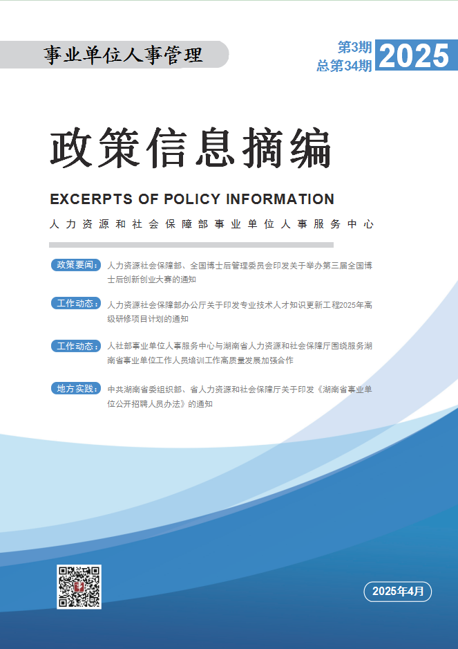 政策动态 | 事业单位人事管理政策信息摘编2025年第3期(总第34期)