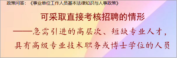 点击上方蓝字,关注我们 公开招聘考试与考核的内容方式有何规定? 公开招聘考试的内容方式有何规定? (一)公开招聘考试可采取笔试、面试、实际操作能力测试等多种方式。按照“干什么、考什么”的原则,合理设置考试内容,符合岗位要求。 (二)考试内容应为招聘岗位所必需的专业知识、业务能力和工作技能。考试科目与方式根据行业、专业及岗位特点确定。 (三)对专业技术岗位和工勤技能岗位的招聘,不应将行政职业能力测试列为笔试内容;对应聘工勤岗位的人员,可根据需要重点进行实际操作能力测试。 公开招聘考核的内容方式有何规定? (一)公开招聘考核应侧重于思想政治表现、道德品质以及应聘岗位相关的业务能力和工作实绩等。 (二)急需引进的高层次、短缺专业人才,具有高级专业技术职务或博士学位的人员,可以采取直接考核的方式招聘。 (三)对通过考试的应聘人员,用人单位应组织对其思想政治表现、道德品质、业务能力、工作实绩等情况进行考核,并对应聘人员资格条件进行复查。 ——以上内容摘自《事业单位工作人员基本法律知识与人事政策》一书 第五章 第一节 公开招聘 来源 :人社部事业中心培训规划服务处 联系方式: 010-84632937 培训工作简介 人力资源和社会保障部事业单位人事服务中心是全国第一家服务广大事业单位的权威专业机构。中心立足培训职能,坚持外向发展,发挥自身课程、师资、资源和平台优势,积极承接行业部门和企事业单位的委托办班、机关讲堂、培训课题研究等,参与全国事业单位培训政策调研、大纲编制、课程开发、教材建设、网络平台建设等工作。此外,长期开展专业技术人员继续教育和国际交流、职业技能提升网络培训,承担国家“专业技术人才知识更新工程”任务,承办人社部机关党校教学服务保障。 往期精选
